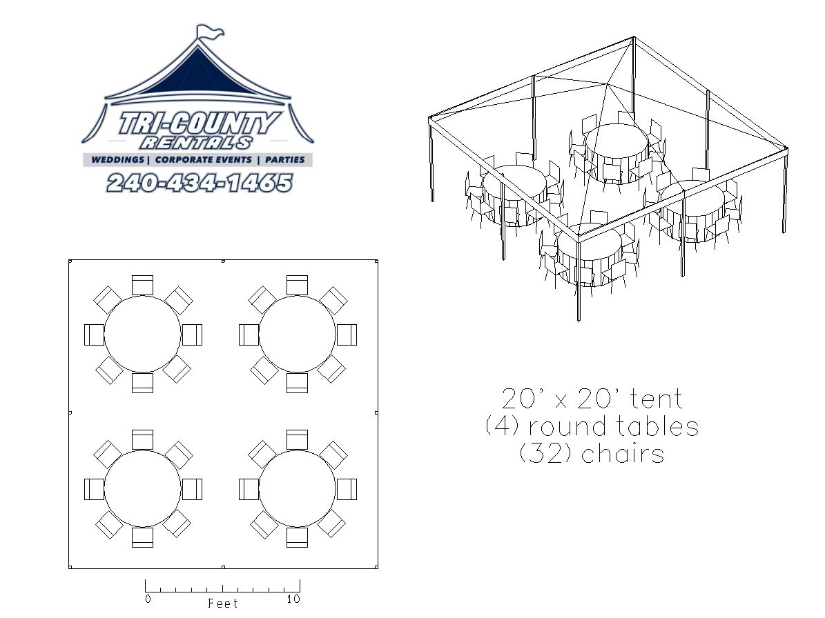 20×20 Package $505.00 Expand 4 Round Tables 32 chairs